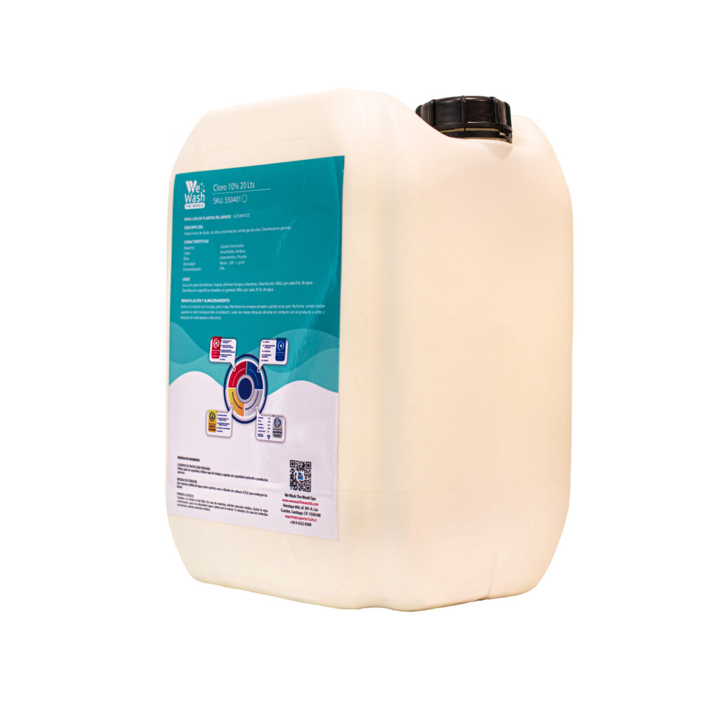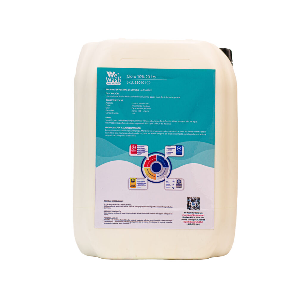 Hipoclorito de Sodio, de alta concentración, emite gas de cloro. Desinfectante general.