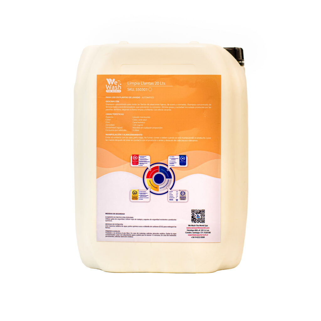 Shampoo concentrado para todas las llantas de aleaciones ligeras, de acero y cromadas. Shampoo concentrado de tensoactivos y acondicionadores que previenen la corrosión. Elimina grasa y suciedad incrustada producida por las pastillas de freno, dejando la llanta limpia y brillante. Con efecto secante.